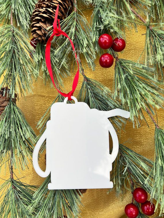 But what sets this ornament apart is its bottom layer crafted from sleek white acrylic. This modern twist not only adds a contemporary flair but also serves as a brilliant canvas for the hilarious saying that will leave your guests in stitches. The witty quip is sure to spark conversations and laughter, making it a standout piece on your Christmas tree.