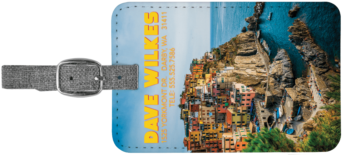 These 4 1/4″(L) x 2 3/4″(H) personalized luggage tags are professionally dye sublimated. The images will not rub, peel, or scratch off.
