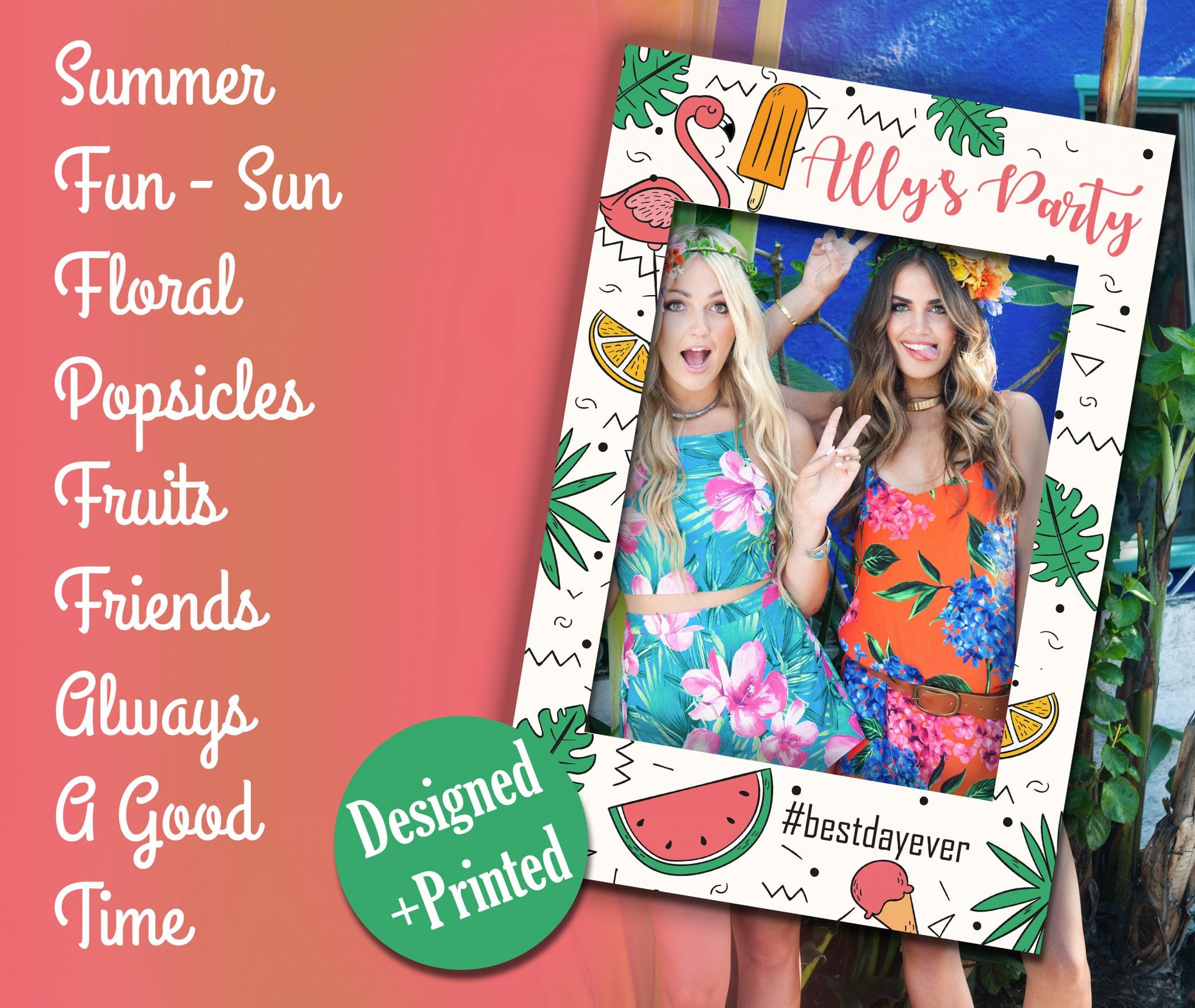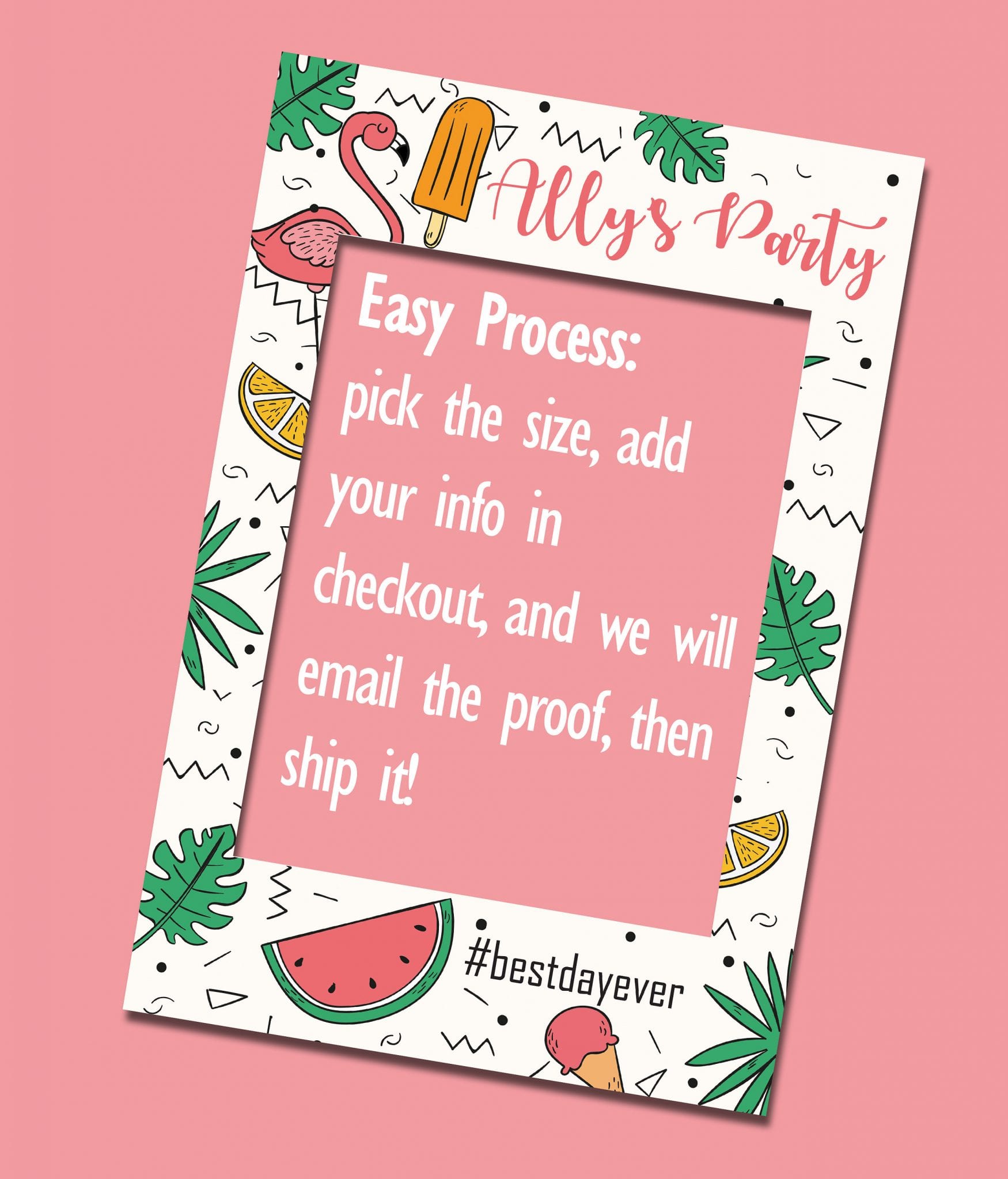 Our PiccaProp Summer Bridal Shower Prop / Party Photo Prop is a great way to promote your pictures on Instagram or whatever social media frame of your choice. Your bridal shower or even if you want it as a wedding photo props it will be a big hit. These full color coroplast photo frames are an instant hit for any event, Instagram wedding sign, birthday party, red carpet event, prom, graduation, family reunions, church events, bridal showers, engagement parties, Bar and Bat Mitzvahs, Quinces, Sweet Sixteens, baby showers, anniversaries, New Years, corporate events, business promotional events, and more. We will make a custom social media frame for Facebook, Instagram or Twitter.